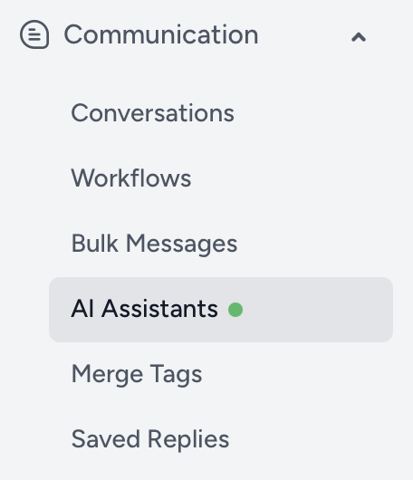 - Click the Communication dropdown in the left-hand navigation menu on your CRM Dashboard.