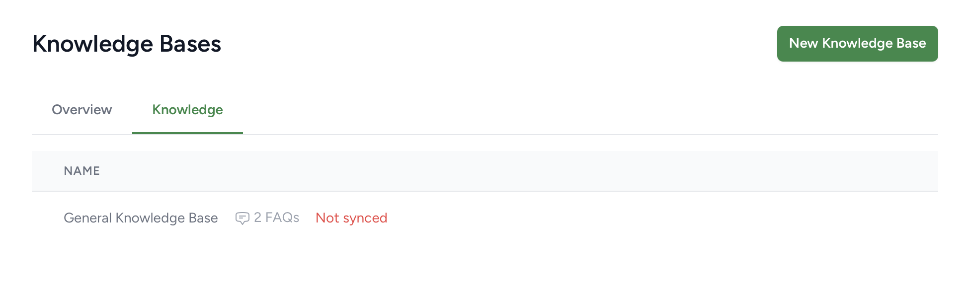 - First, you'll want to build out a Knowledge Base, so click on the Knowledge tab and click the green New Knowledge Base button in the top-right.