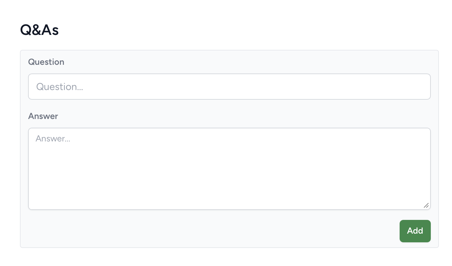 - You'll be directed to a Q&As page where you'll input all the information you want the AI Assistant to have in a Question-and-Answer format.