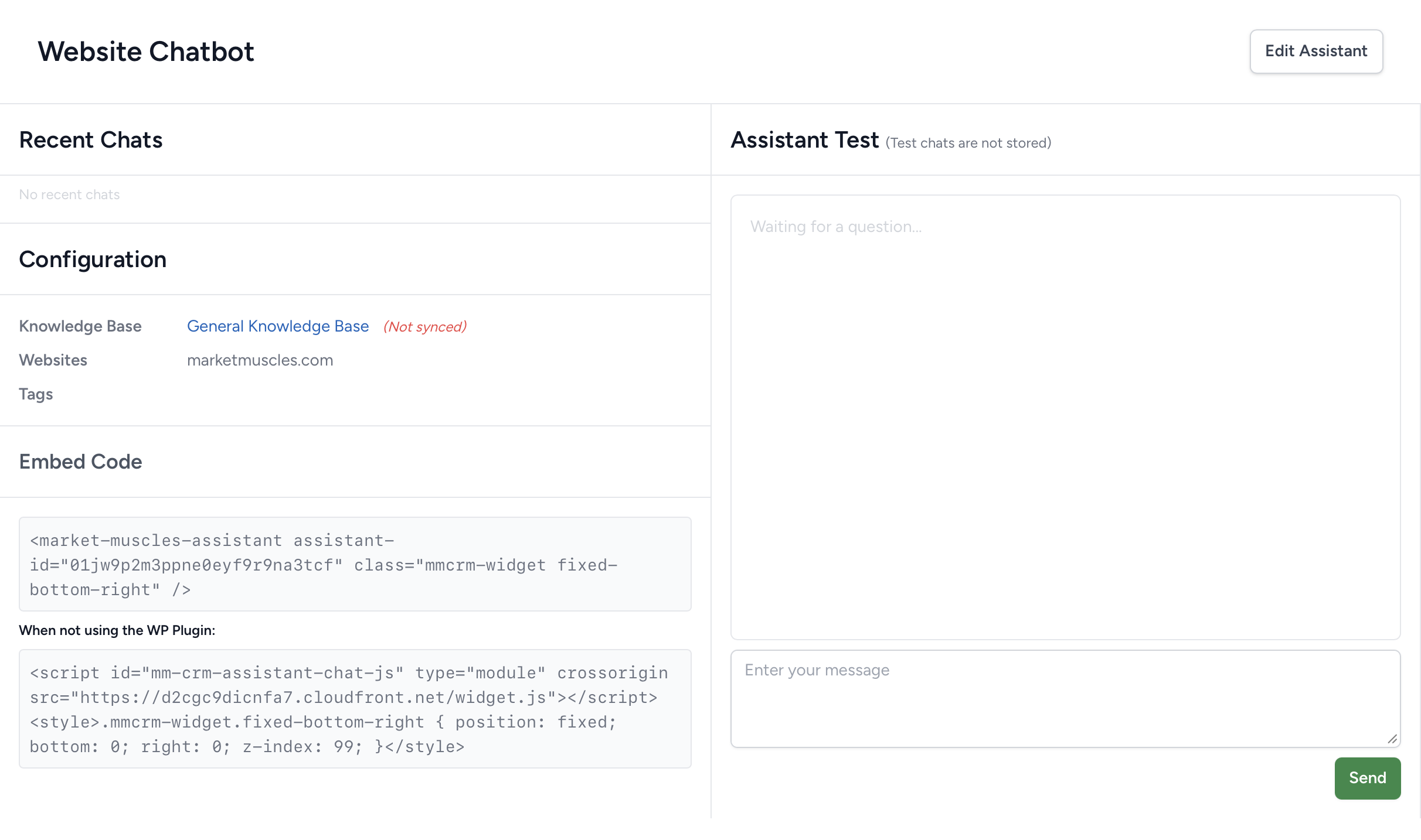 - Click the green Update button in the top-right to add your AI Assistant to your website.