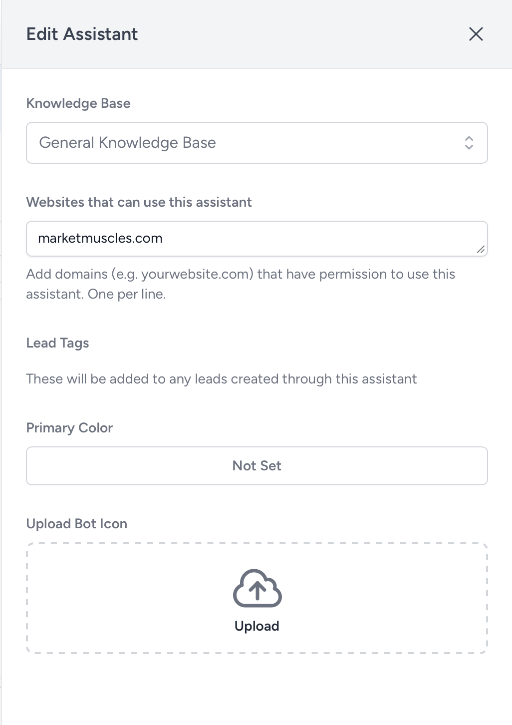 - Click the Edit Assistant button in the top-right to select which knowledge base this AI Assistant is using, and to assign the AI Assistant to a domain.